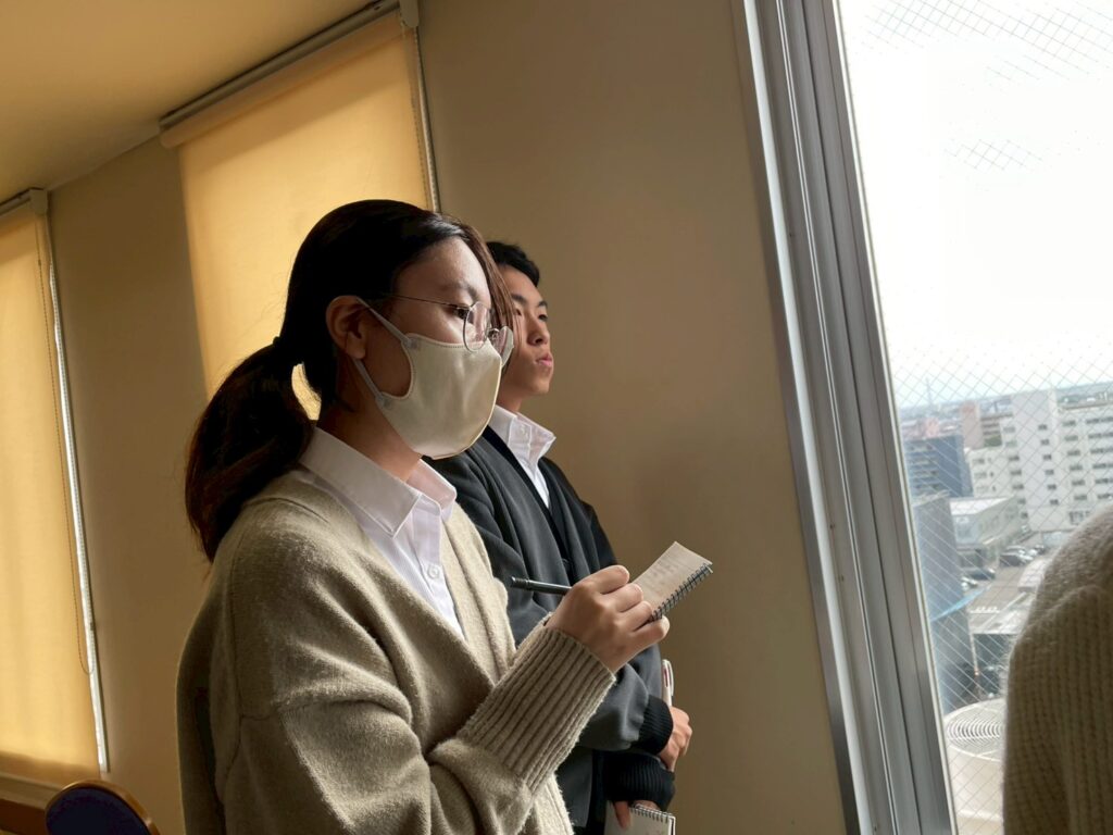 その後、法人会にお邪魔して、法人会が行っている活動についてお話を聞きました。会社の経営者の方の団体で、経営者の方向けの税の研修会や、小中学生へ向けた租税教育を行っていると学びました。また法人会は様々な業種の方が入会されているため、業種の壁を超えて経営者同士の交流を広げることができると学びました。