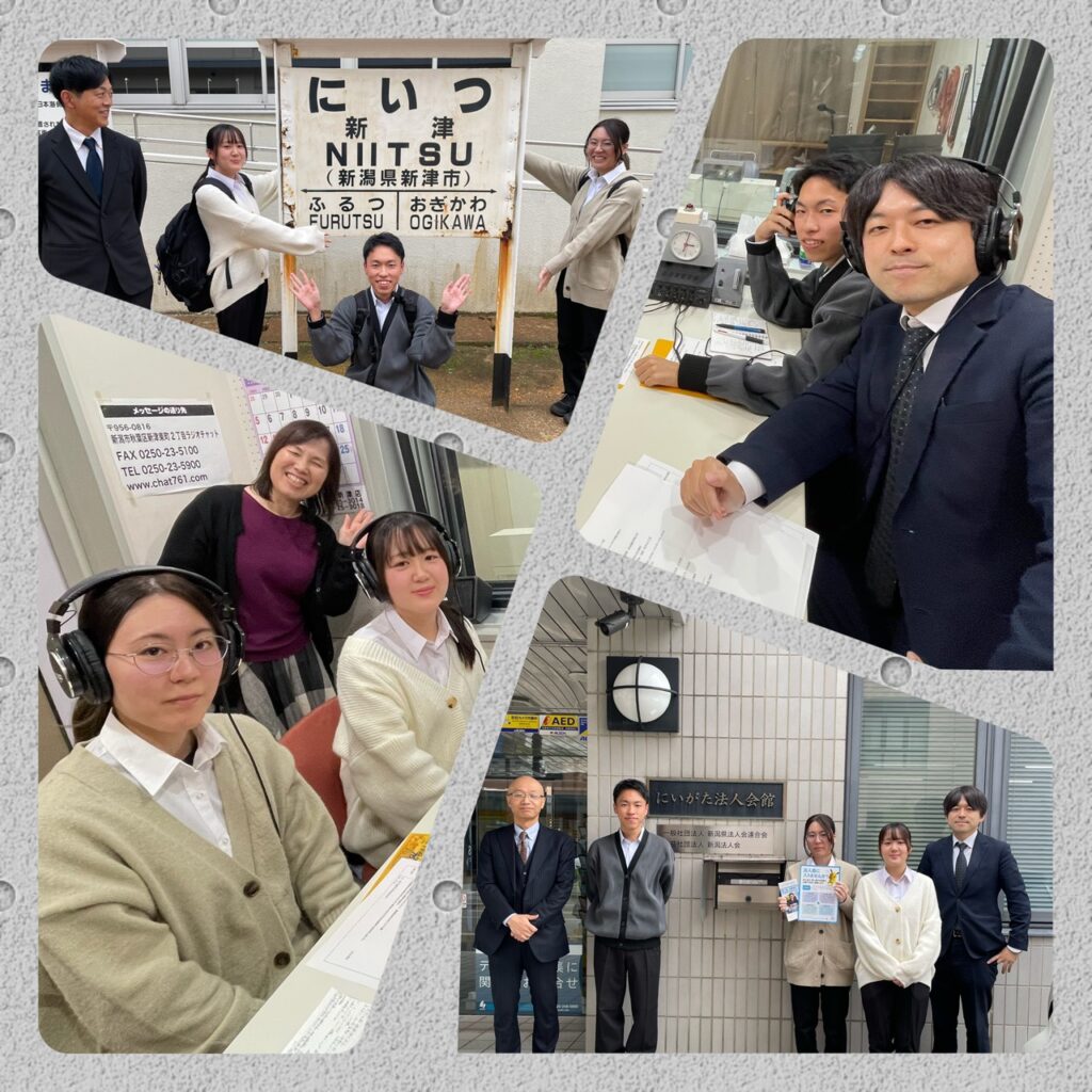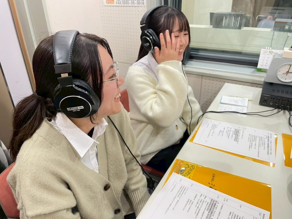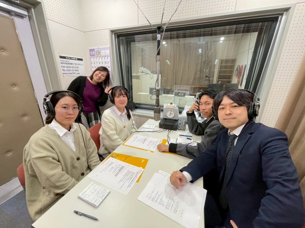 午後からはFM新津のラジオ番組に出演させていただきました。この5日間ずっと頭の中でラジオ収録の心配をするくらい緊張していました。しかし自分なりの言葉で、今回の実習での学びや楽しかったこと、大変だったことを話すことができて良かったです。ラジオに出れる貴重な経験をさせていただきありがとうございました!